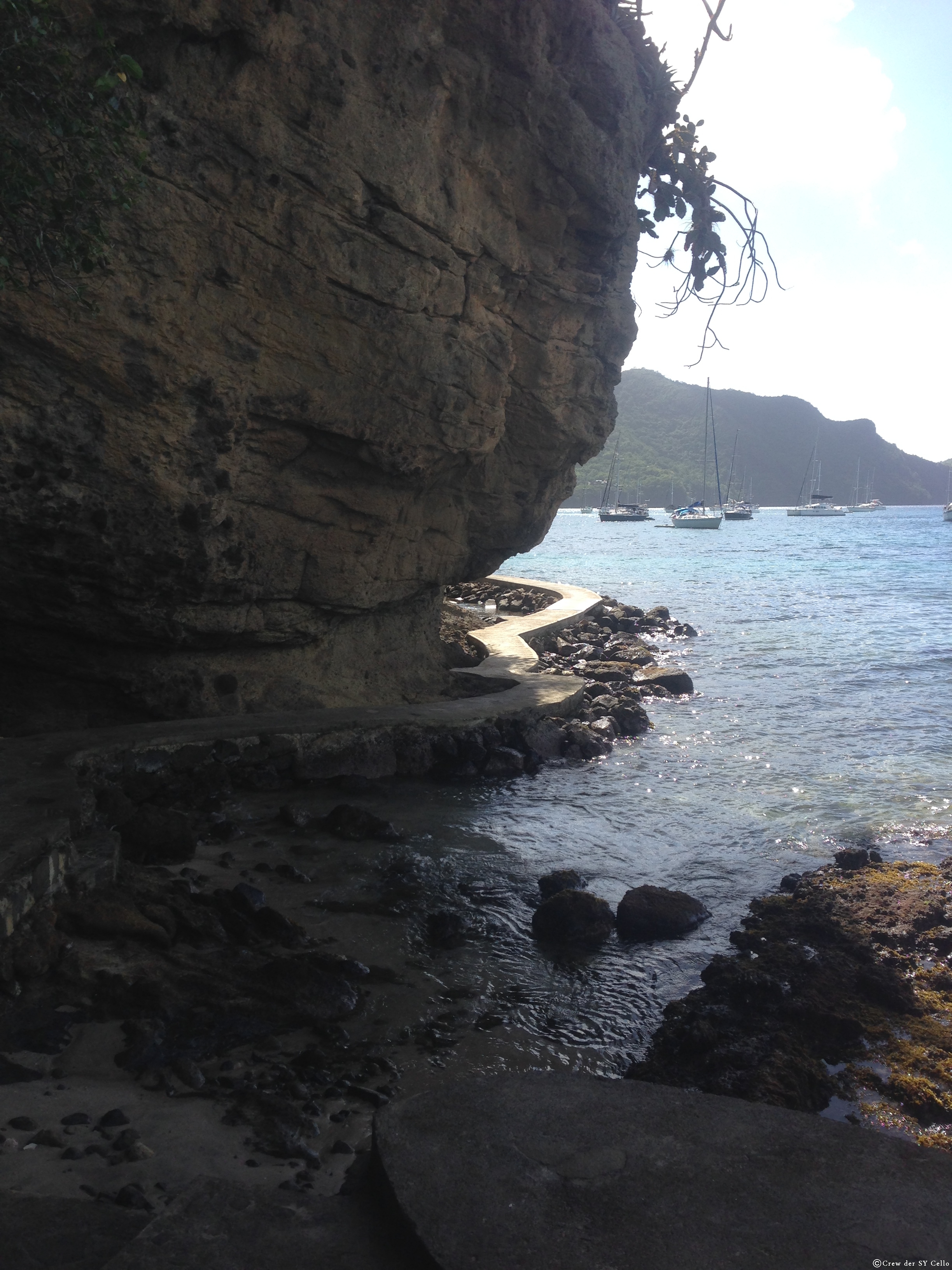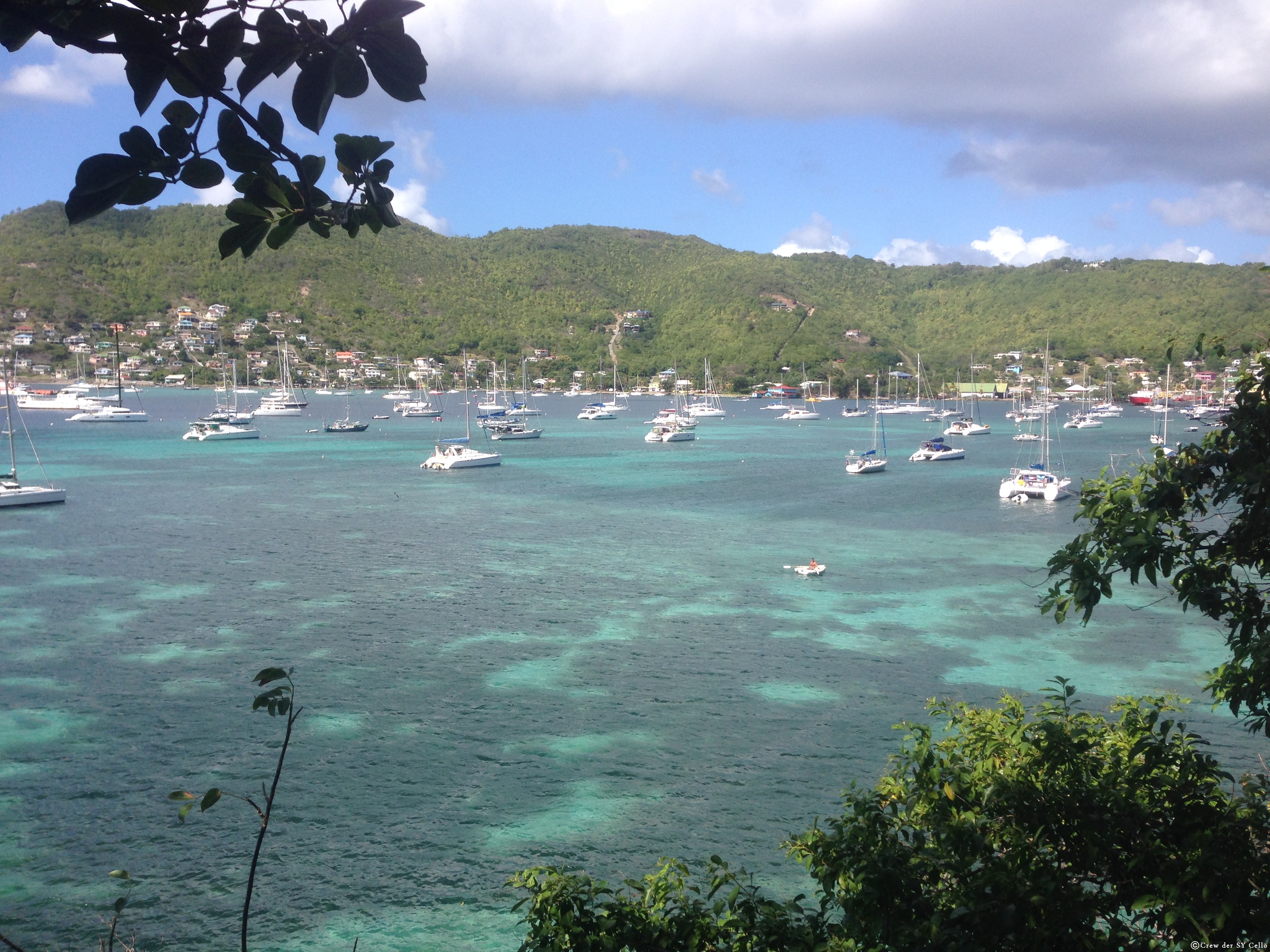 Am späten Nachmittag ging es dann über die Nacht an St. Vincent vorbei in Richtung Bequia. Dies ist eine kleine Insel, die zur Inselgruppe St. Vincent und die Grenadinen gehört. Wir haben dann direkt an einer Boje neben dem Schiff Madrugada (Lanzarote, Martinique) angeleint und dafür 50 Ost-Karibische-Dollar (circa 18€) bezahlt. Lisa und ihr Papa (Markus) sind schon seit zwei Wochen hier auf Bequia und so sind wir mit den Beiden an Land, um uns das Dörfchen anzuschauen. Es ist eine wirklich sehr schöne Bucht, mit ultra klarem Wasser und schönen Stränden. Insgesamt leben hier auf der Insel wohl nur 4500 Einwohner und man begegnet immer den gleichen Menschen. Ab und an legt ein riesiges Kreuzfahrtschiff an und bringt eine Menge Menschen an Land, die ganz viele Fotos schießen und sich hässliche T-Shirts kaufen. Zwei Stunden später sind sie weg und es kommt eine neue Meute.