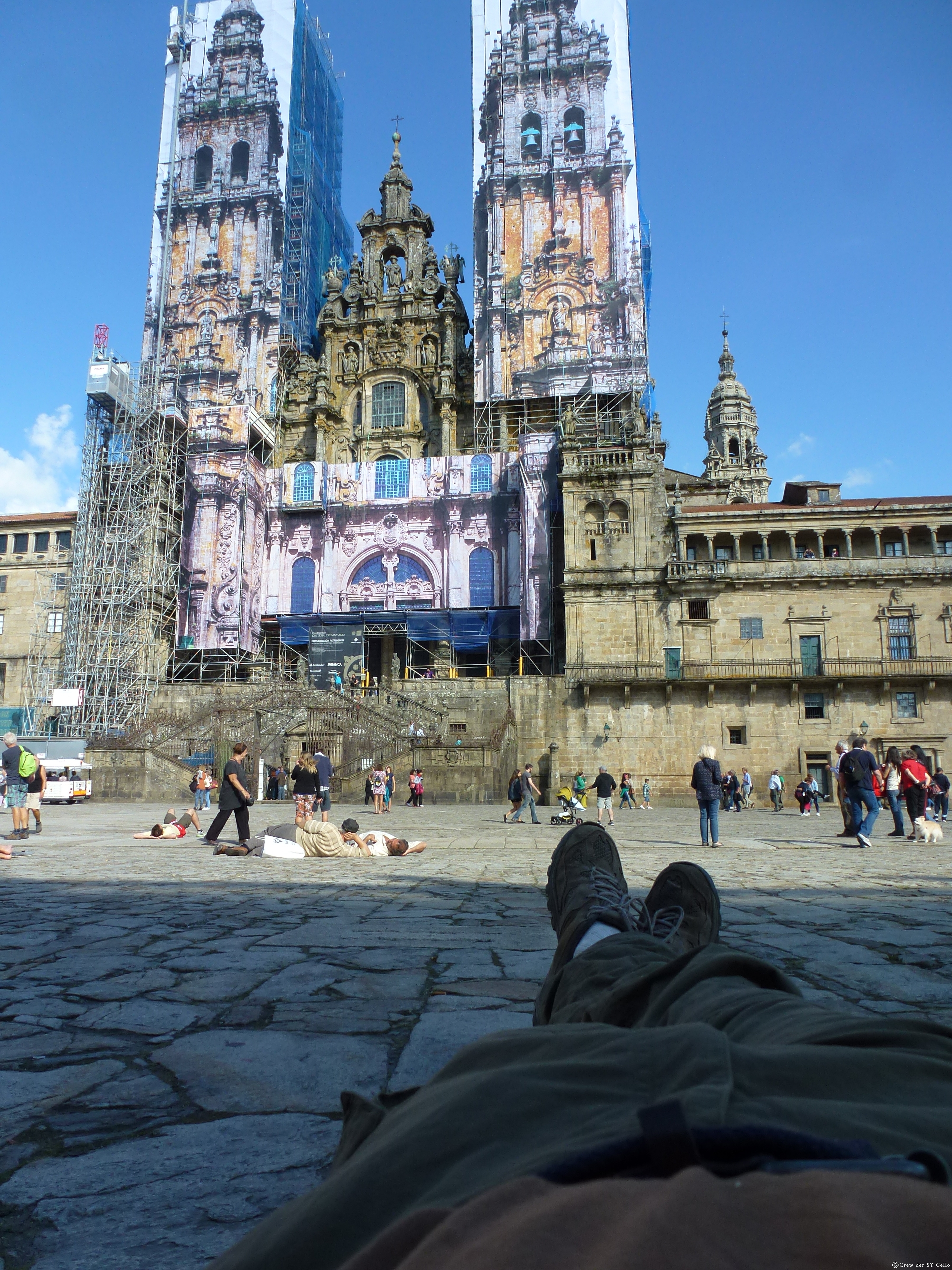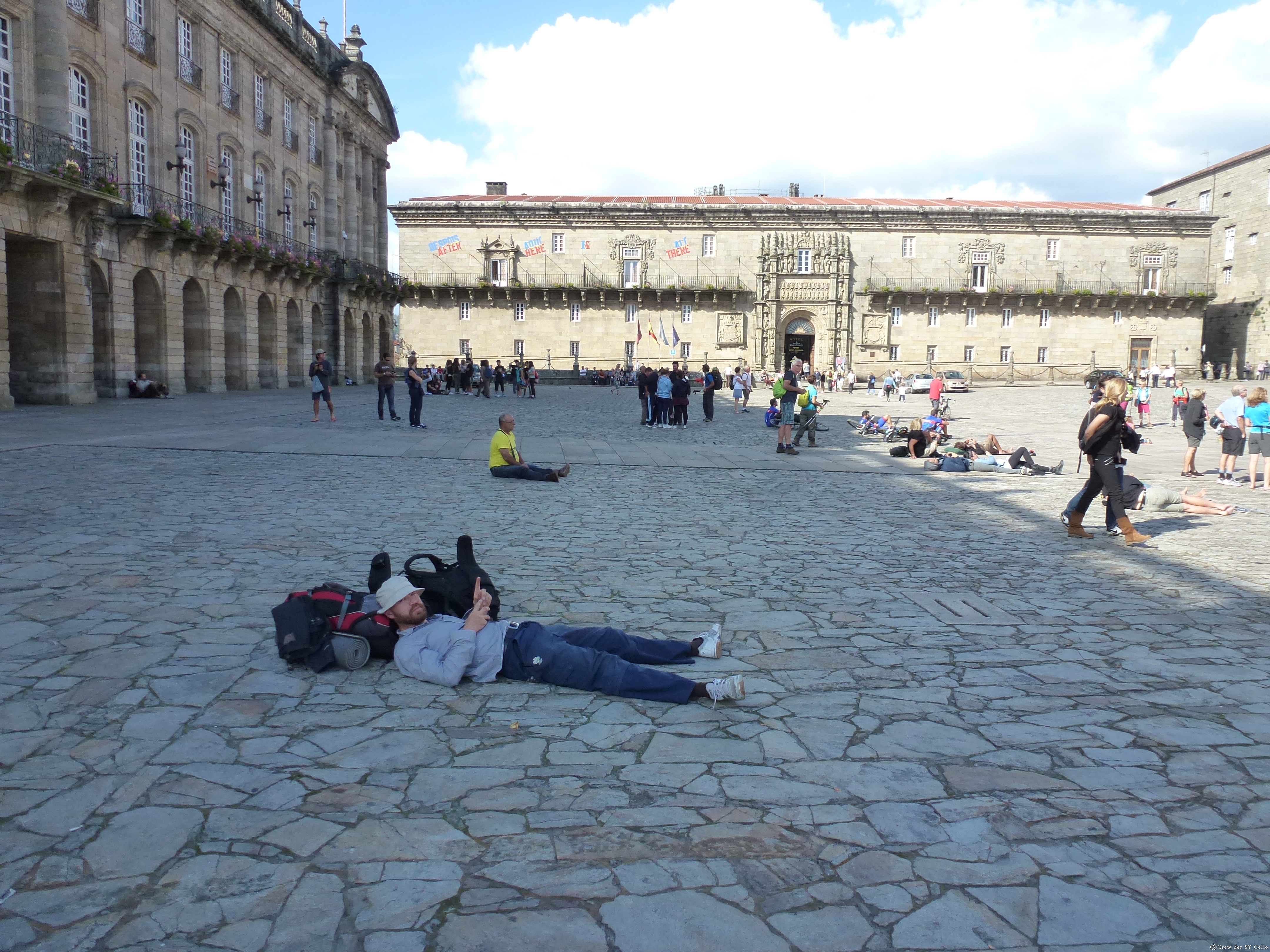 Wir sind uns sicher, dass unsere Sünden nun alle vergeben sind, da wir sogar fast geschwitzt haben und auch eine Blase am Zeh war dabei. Das witzigste an Santiago ist Santiago. Aber dass man während einer Predigt hinter der ganzen Goldfassade durchlaufen und die Pfarrer und die Gemeinde von hinten durch die ganzen Verzierungen sehen kann, ist auch gut. Vor allem, weil die doch alle sehen, dass da einer durchläuft. Naja, im Gegensatz zu den richtigen Pilgern, wurden unsere Namen nicht in der Predigt vorgelesen, wir hatten viel zu wenig Pilgerstempel.